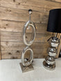 Tischlampe Silber Metall, Tischleuchte Metall-Silber, Tischlampe mit Lampenschirm schwarz, Höhe 95 cm