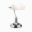 Tischleuchte retro mit verchromten Fuß, Glasschirm weiß - Chrom ist auf Lager und wird versandt, sobald es wieder verfügbar ist