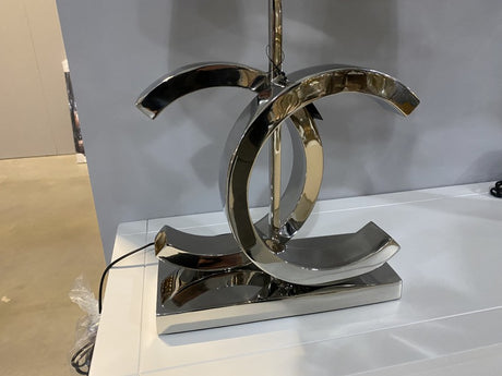Tischlampe Silber, Tischleuchte verchromt, silberne Tischleuchte, Höhe 55 cm