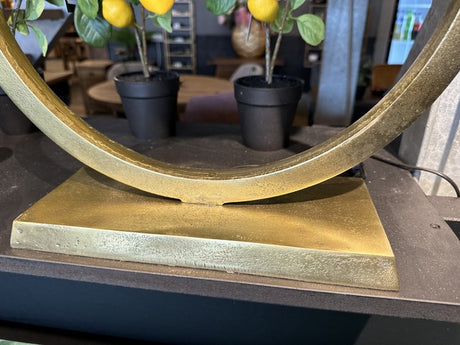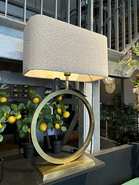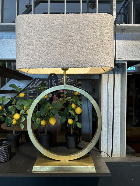 Tischlampe Gold rund mit Lampenschirm, Tischleuchte mit Lampenschirm beige