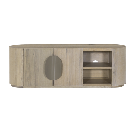 TV Schrank oval weiß-wash, Fernsehschrank oval Eiche furniert, Breite 180 cm