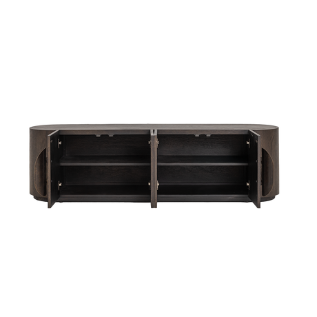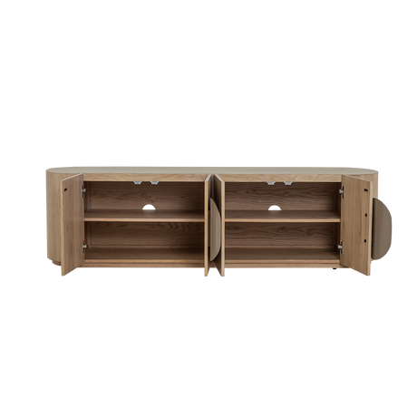 Fernsehschrank oval Holz furniert, TV Schrank Naturholz, Breite 210 cm