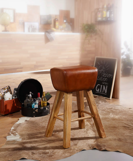 Barhocker braun Leder, Barhocker Holzgestell, Sitzhöhe 75 cm