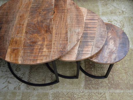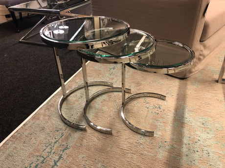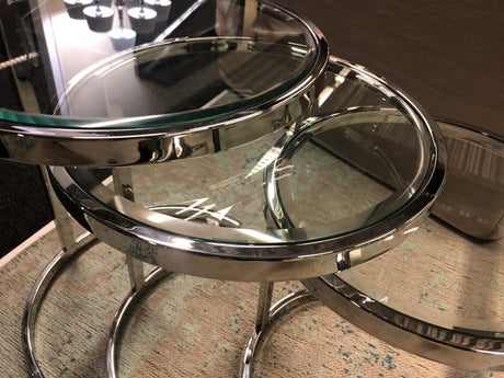3er Set Beistelltische rund verchromt, Beistelltisch Glas Metall rund