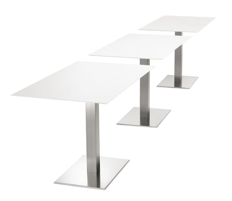 Design Tisch weiß, Gestell Edelstahl satiniert