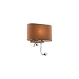 Wandleuchte Metall chrom, Stoff braun, modern + Leseleuchte LED