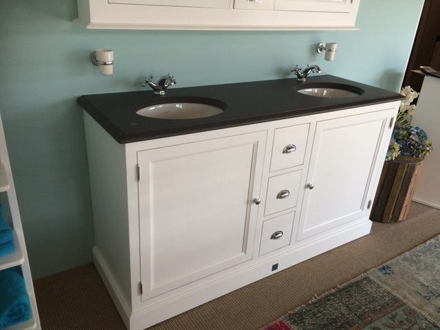 Waschtisch, Doppelwaschtisch im Landhausstil, Farbe weiß-anthrazit, Breite 162 cm