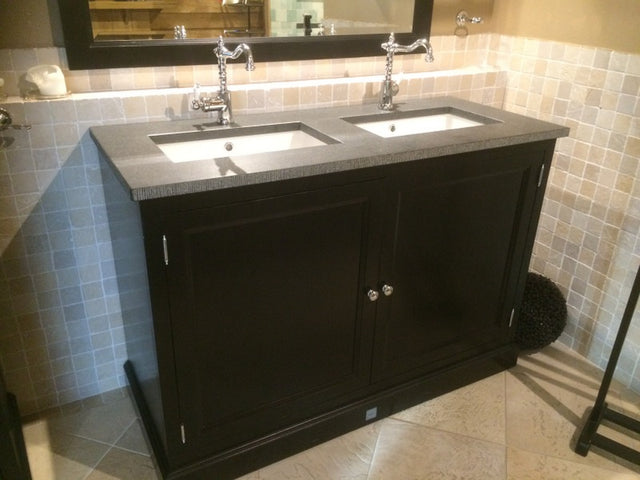 Waschtisch schwarz Massivholz, Doppelwaschtisch im Landhausstil, Spiegel optional
