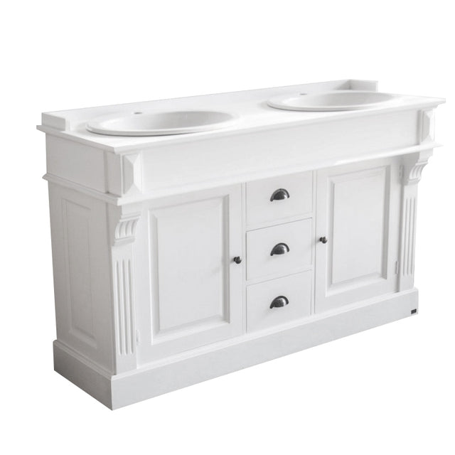 Waschtisch weiß Massivholz, Doppelwaschtisch im Landhausstil, Spiegel optional