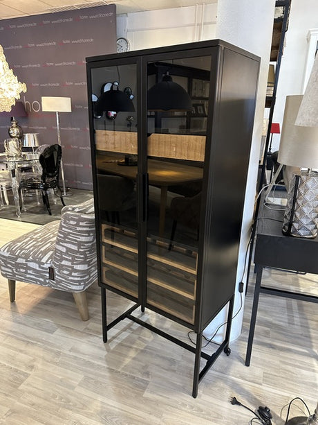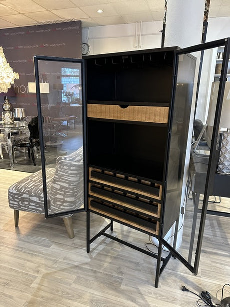 Weinschrank Metall, Weinschrank schwarz, Vitrine Weinschrank schwarz, Breite 66 cm