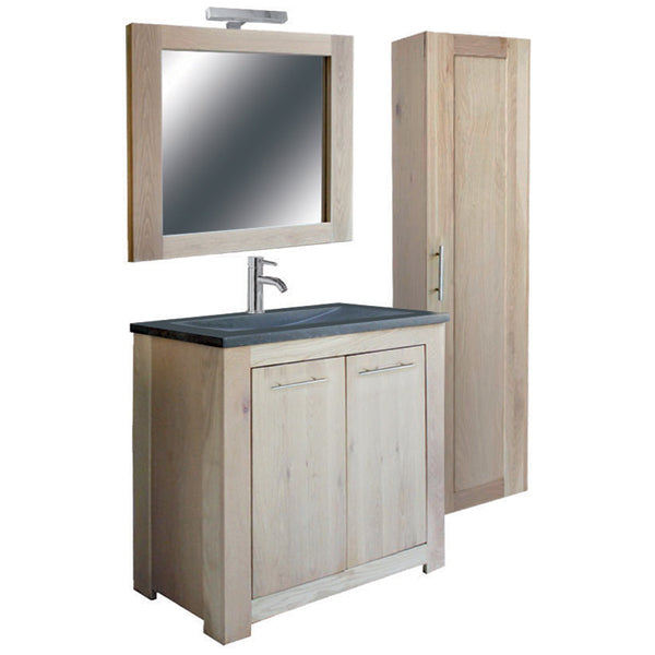 Badezimmer Set, Eiche massiv, Waschtisch mit Badezimmerschrank und Spiegel, Bad Möbel Set, Breite 100 cm