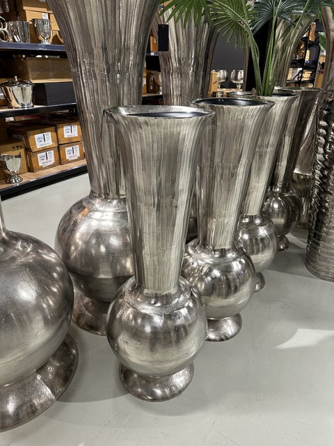 Bodenvase Silber, Bodenvase Metall groß, Vase Silber, Höhe 120 cm
