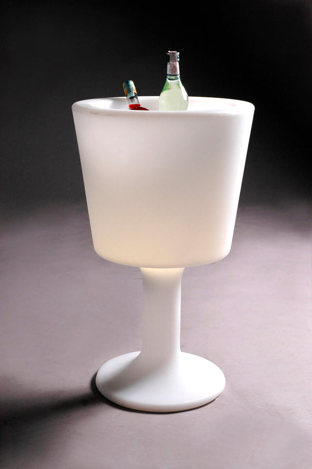 Design Beistelltisch in Weiß, Sektkühler weiß mit Beleuchtung