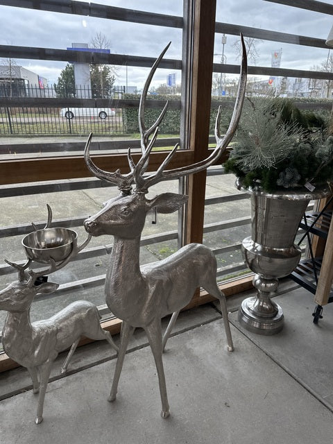 Hirsch Silber Metall, Rentier Silber Hirsch, Höhe 150 cm