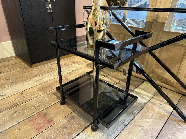 Servierwagen schwarz, Serviertisch Glas, Trolley schwarz
