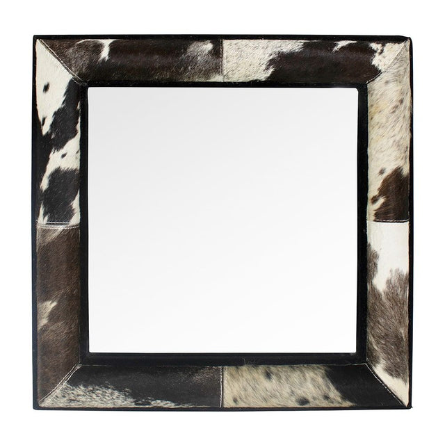 Spiegel Kuhfell, Wandspiegel Kuhfell-Rahmen, Spiegel quadratisch schwarz