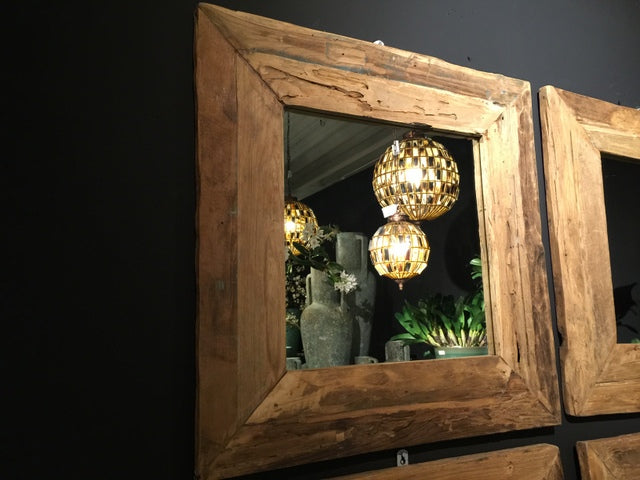 Spiegel Massivholz Teak, Wandspiegel, Maße 80 x 80 cm