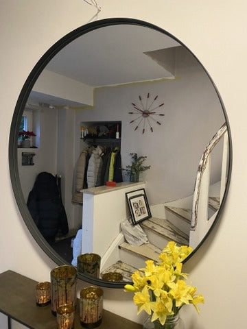 Spiegel rund schwarz, runder Wandspiegel Metallrahmen schwarz, Durchmesser 115 cm ist auf Lager und wird versandt, sobald es wieder verfügbar ist