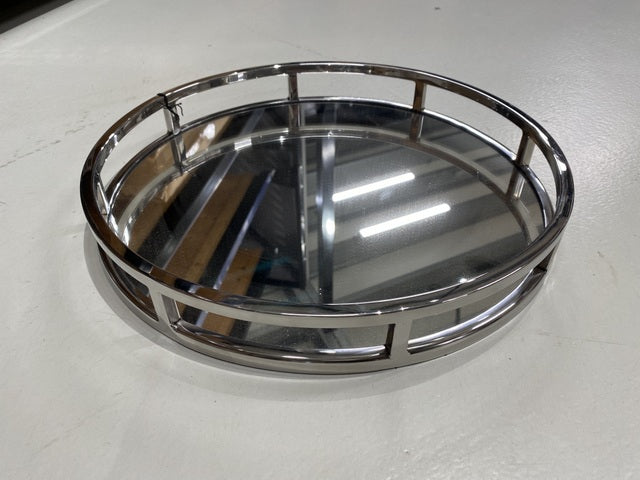 Tablett rund Silber, Tablett Spiegel, Breite 38 cm