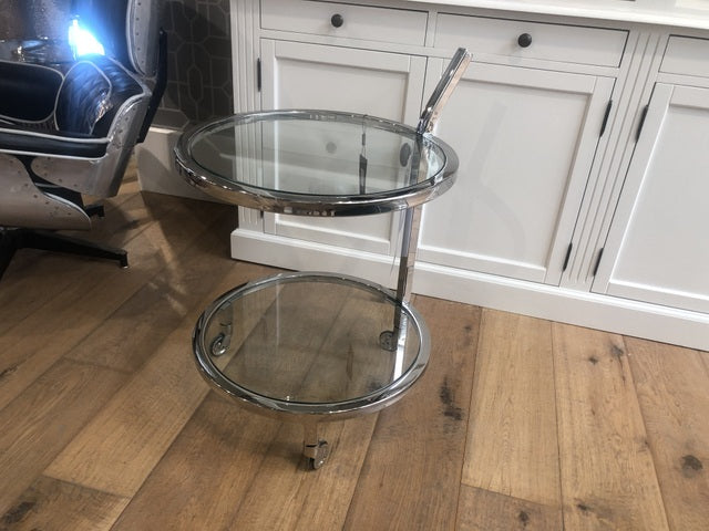 Trolley Silber Glas, Servierwagen Silber Metall Glas, Durchmesser 51 cm