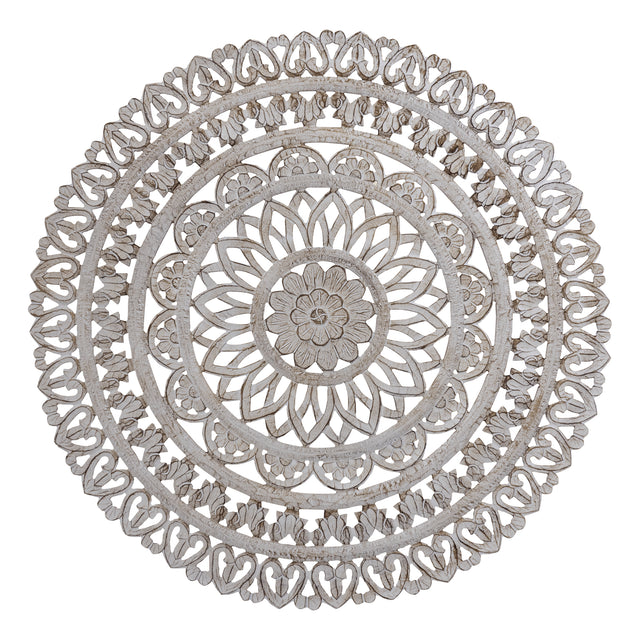 Wandpanel rund Holz, Wandbild rund Farbe creme, Durchmesser 120 cm