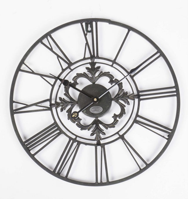 Uhr im Landhausstil. Die Wanduhr schwarz-vintage ist aus robustem Metall geschweißt und gut verarbeiten.