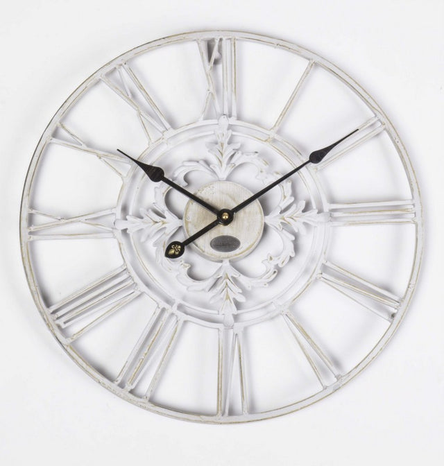 Wanduhr Metall im Landhausstil, Uhr weiß-beige vintage, Ø 102 cm