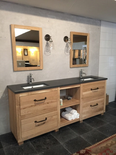 Waschtisch Eiche massiv, Doppelwaschtisch im Landhausstil, Breite 193 cm - mit Spiegel 2er Set ist auf Lager und wird versandt, sobald es wieder verfügbar ist
