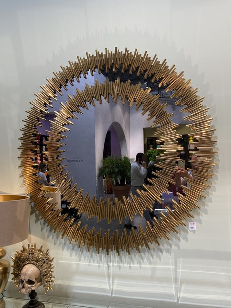Wandspiegel rund Gold, Gold Spiegel rund, Durchmesser 132 cm