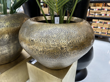 Großer Blumentopf Bronze, XL Blumentopf Metall Gold matt, Durchmesser 63 cm