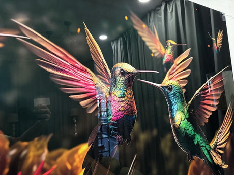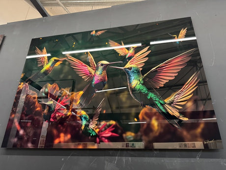 Bild bunte Vögel, Glas Bild bunt, Breite 160 cm