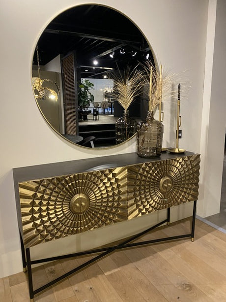 Spiegel rund Gold, Wandspiegel Gold, runder Spiegel Gold, Durchmesser 120 cm