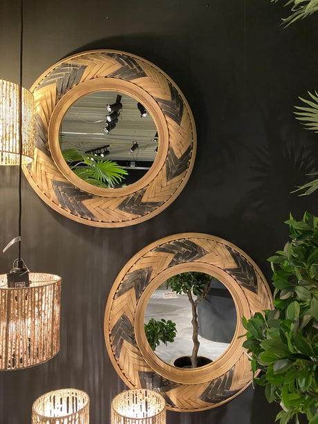 Spiegel rund Rattan, runder Wandspiegel Rattan, Maße 65 cm
