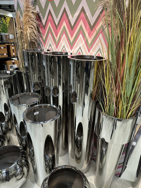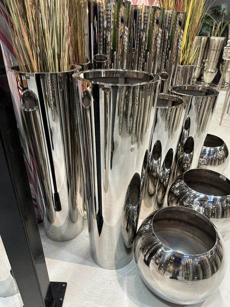Blumentopf Silber, Blaumenhochtopf Silber, Hochtopf Silber, Höhe 110 cm