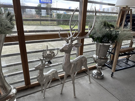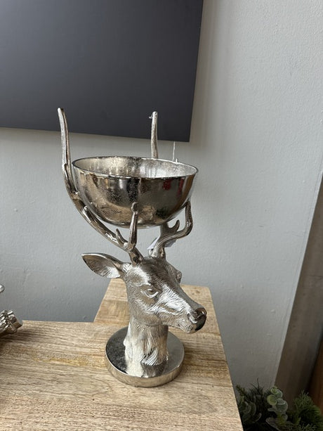 Weinkühler Hirsch Silber, Sektkühler Hirsch, Champagnerkühler Silber Hirschkopf, Höhe 56 cm