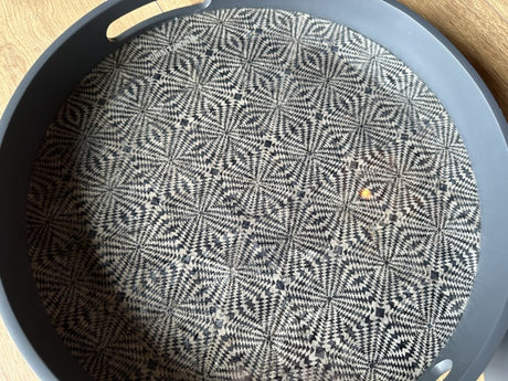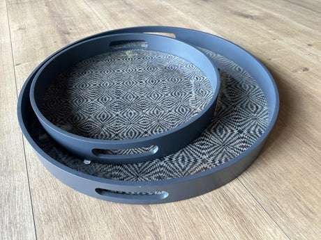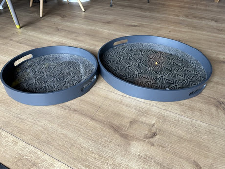 Tablett rund schwarz, 2er Set Tablett schwarz mit Muster, Durchmesser 40-56 cm