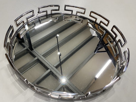 Tablett rund Silber, Tablett Spiegel, Breite 48 cm