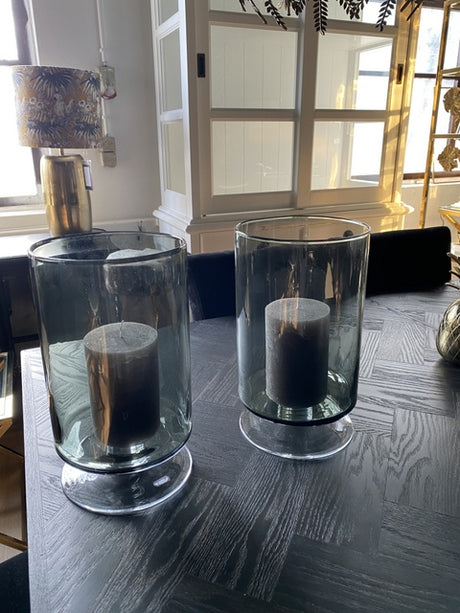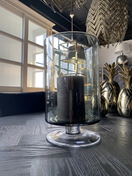 Windlicht Glas, Blumenvase Glas grau, Glas-Windlicht, Glasvase, Durchmesser 20 cm