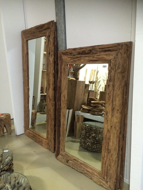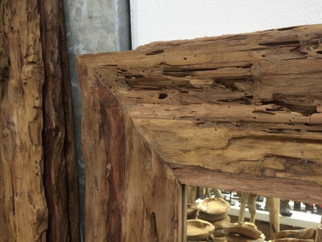 Spiegel Teakholz recycled, Wandspiegel Holzrahmen, Maße 160 x 80 cm