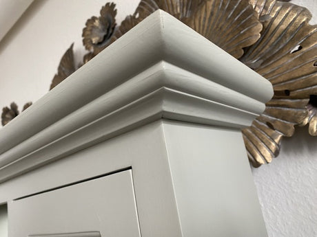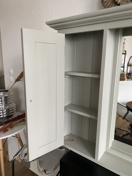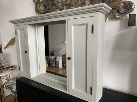 Spiegelschrank grau Massivholz, Badezimmer Spiegel grau Landhausstil, Maße 131 x 80 cm