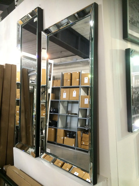Spiegel schwarz, Wandspiegel Metallrahmen schwarz, Höhe 225 cm