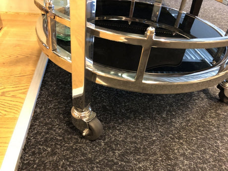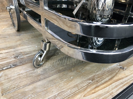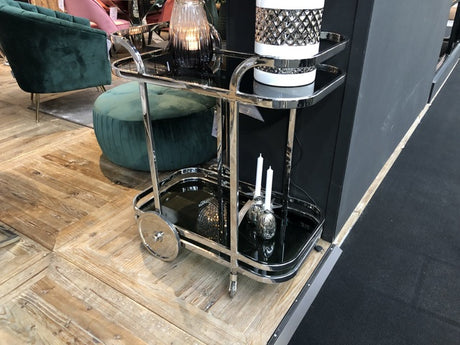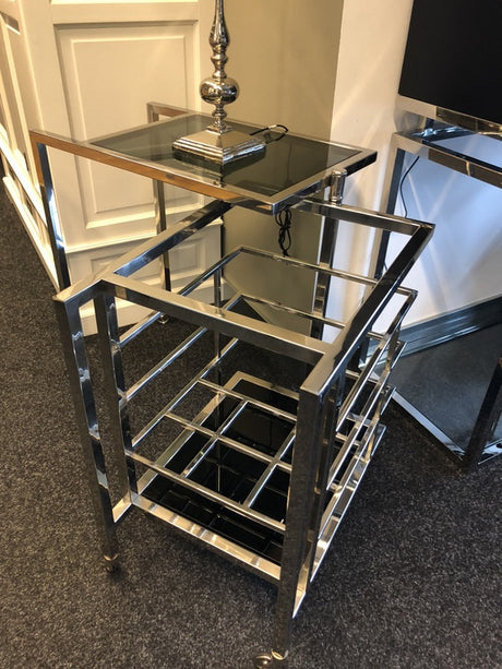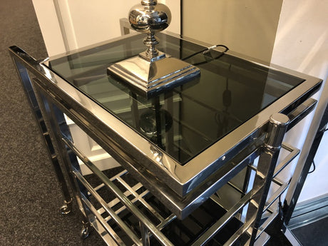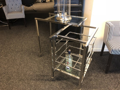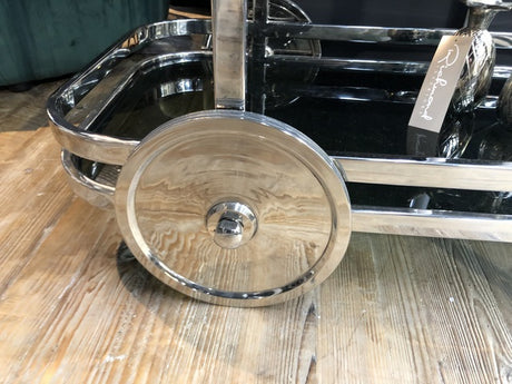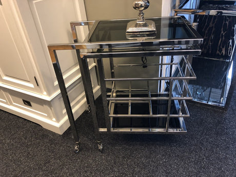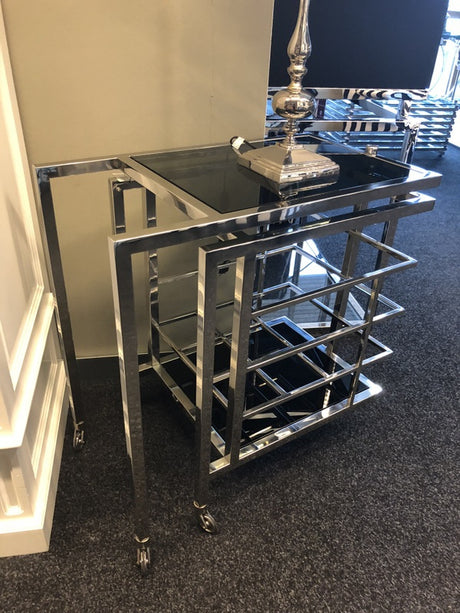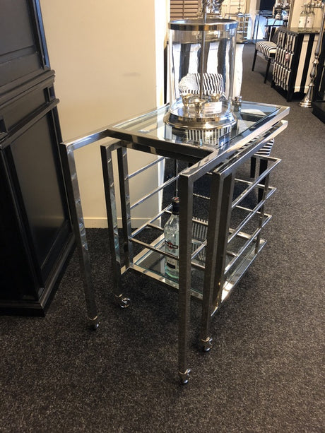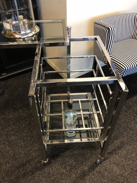 Servierwagen Silber Glas, Serviertisch Silber, Trolley verchromt Glas Metall