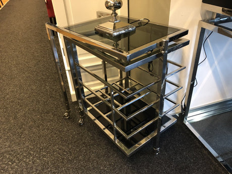 Trolley verchromt Glas, Servierwagen verchromt Metall Glas, Breite 76 cm