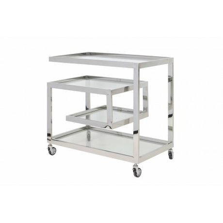 Servierwagen Glas Metall, Serviertisch silber-Glas, Trolley silber