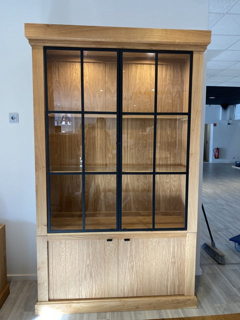 Vitrinen Eiche massiv, Geschirrschrank Eiche im Landhausstil, Breite 138 cm