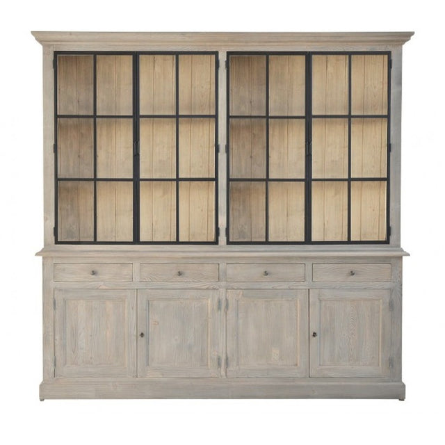 Buffetschrank Landhausstil, Vitrine Naturholz, Geschirrschrank aus Massivholz, Küchenschrank Landhaus, Breite 237 cm - Brosse Nature / Brosse Nature ist auf Lager und wird versandt, sobald es wieder verfügbar ist