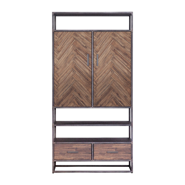 Schrank braun Metall, Wohnzimmerschrank braun Holz, Breite 100 cm