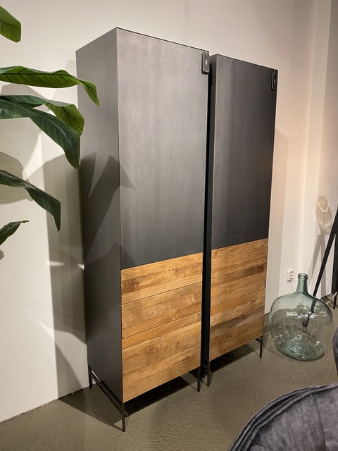 Schrank links Metall Holz, Bücherschrank Holz, Schrank mit drei Schubladen, Breite 55 cm ist auf Lager und wird versandt, sobald es wieder verfügbar ist