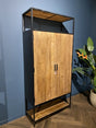 Schrank schwarz-braun Industriedesign, Bücherschrank Holz Metall, Aktenschrank Holz Industrie, Breite 100 cm