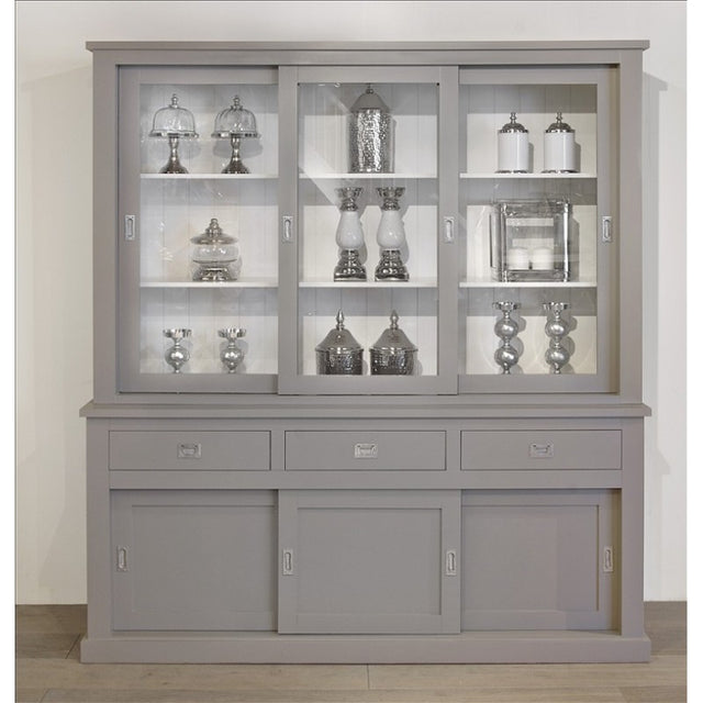 Vitrine grau Landhaus, Vitrinenschrank grau, Geschirrschrank grau, Wohnzimmerschrank grau Landhausstil, Breite 200 cm